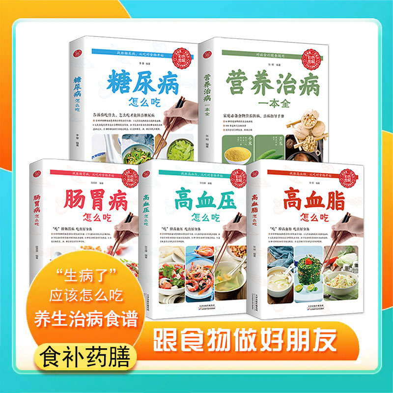 【全彩圖解5冊】糖尿病怎麼吃+腸胃病怎麼吃+高血壓怎麼吃+高血脂怎麼吃+營養治病一本通