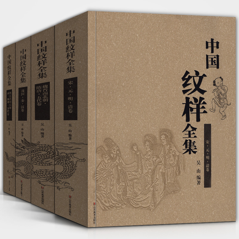 中國古代紋樣全集四卷(宋元明清卷+魏晉南北朝五代卷+戰國秦漢卷+新石器時代春秋卷),古手工刺繡花陶瓷青銅器,龍鳳建築,木工,玉器雕刻,美術圖案,服裝遊戲原畫設計,藝術素材參考書籍大全