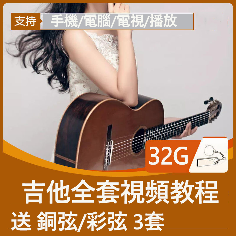 吉他视频教程 零基础入门初学者自学弹唱全套吉他教学隨身碟32G(送銅弦/彩弦3套)