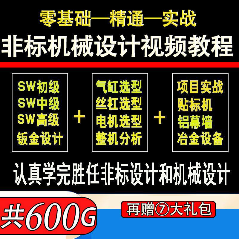 非標自動化機械設計視頻教程U盤600G 視頻自學 標準件選型 案例計算 SW課 PLC視頻教程(U盤發貨 無需下載 即插即看 手機電腦都可以觀看)