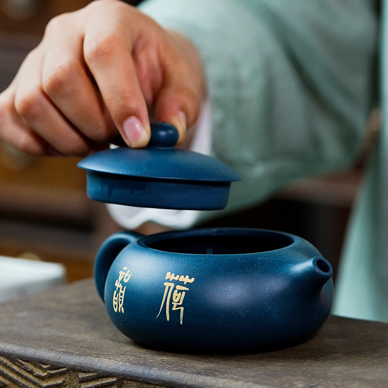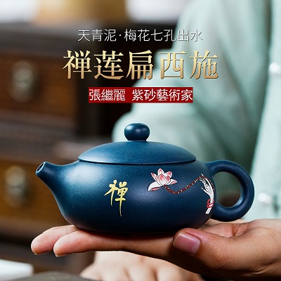 宜興原礦天青泥禪蓮扁西施紫砂壺
