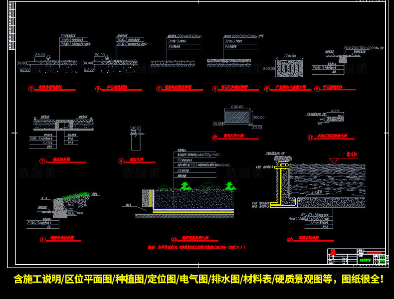 370組園路鋪裝節點大樣剖立面CAD施工圖 +1300套園林景觀設計小品細部CAD節點大樣+1700套公園景觀cad節點圖 (64G U盤發貨 無需下載 即插即看)