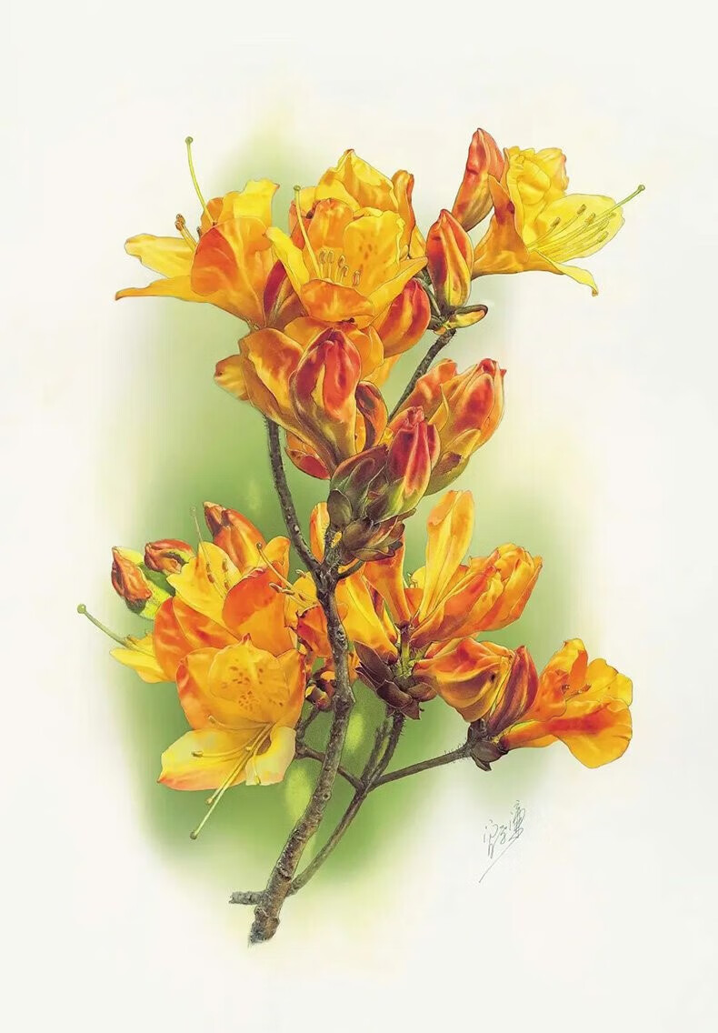 花和鳥是我的重要題材。它們都是物競天擇的造化之美。花是植物渴望生存和繁衍進化出來的最狂熱、最絢麗、最奇妙的表現形態,本意是吸引昆蟲和其他小動物來為自己傳粉,無意間把地球