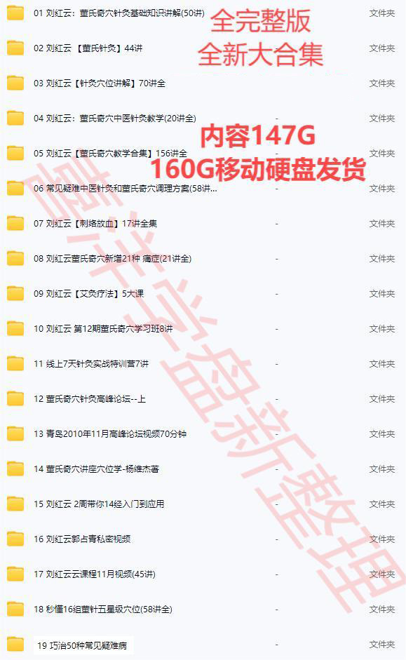 劉紅雲針灸教學影片全集(160G硬碟發貨)無需下載,即插即看,手機電腦都能看
