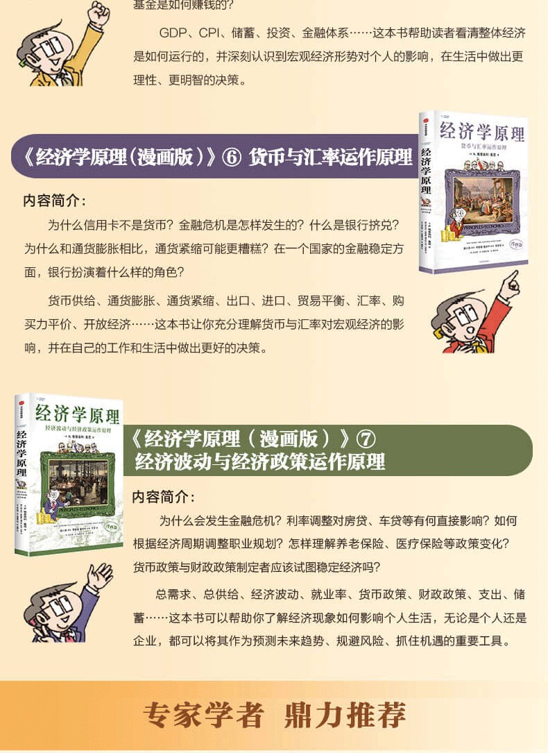 這套官方授權改編的《經濟學原理(漫畫版)》共7冊,涵蓋微觀經濟學和宏觀經濟學兩大知識領域,透過精美的插圖、生動有趣的討論和貼近生活的案例,對經濟學中的重要概念、原理及其在現實生活中的運用進行了通俗化的解釋。
