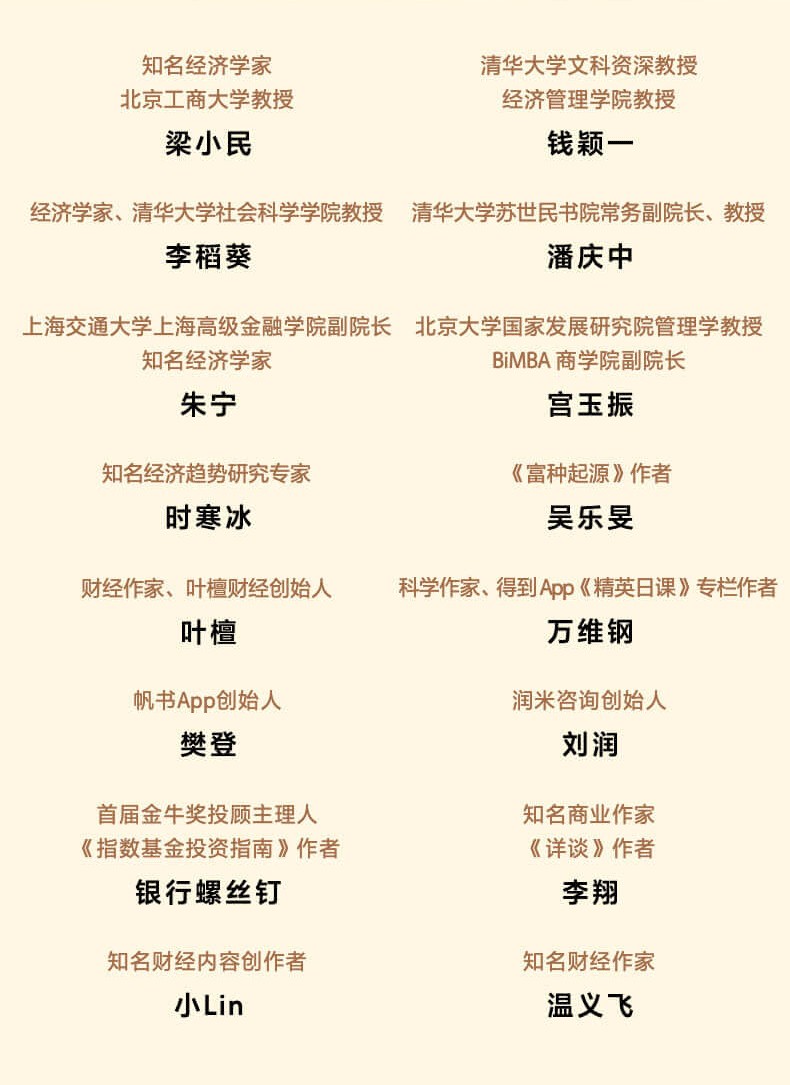 清華大學、北大教授團隊共同翻譯,知名經濟學家、《經濟學原理》譯者梁小民教授審校,清華大學教授李稻葵、潘慶中譯。知名經濟趨勢研究專家時寒冰傾情作序,錢穎一、朱寧、樊登、劉潤、葉檀、小Lin等16位專家學者、暢銷書作者、高勢能大咖聯袂薦。