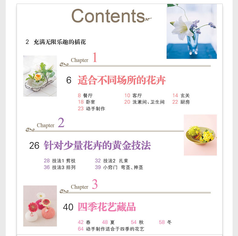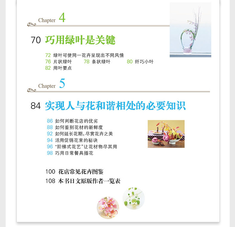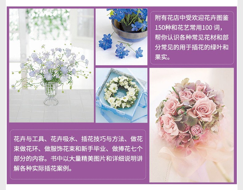 書中詳細介紹了處理花卉的相關基礎知識,如花卉的選擇方法與基本常識,插花工具,花卉吸水方法,花卉固定方法及花束、花環等製作方法。讓花朵以多種形式更加長久地綻放,陪伴我們的生活、溫暖我們的心靈。