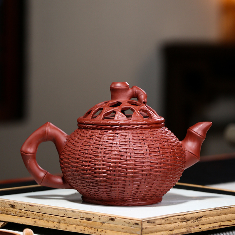 宜興丁蜀鎮原礦大紅袍竹編週盤壺