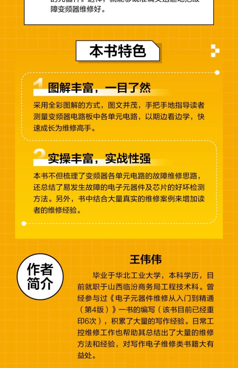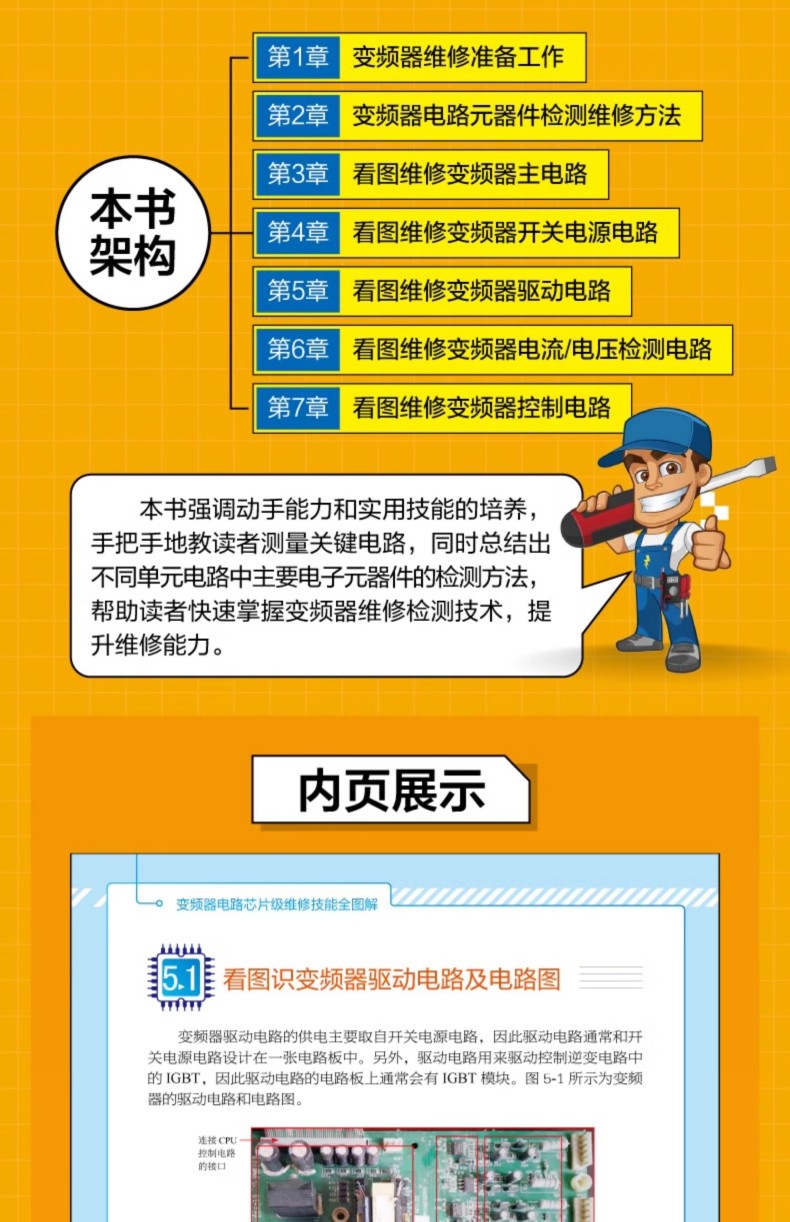 本書適合變頻器維修人員、工業自動化開發及維修人員閱讀,也適合電子、電氣相關專業的師生閱讀。
