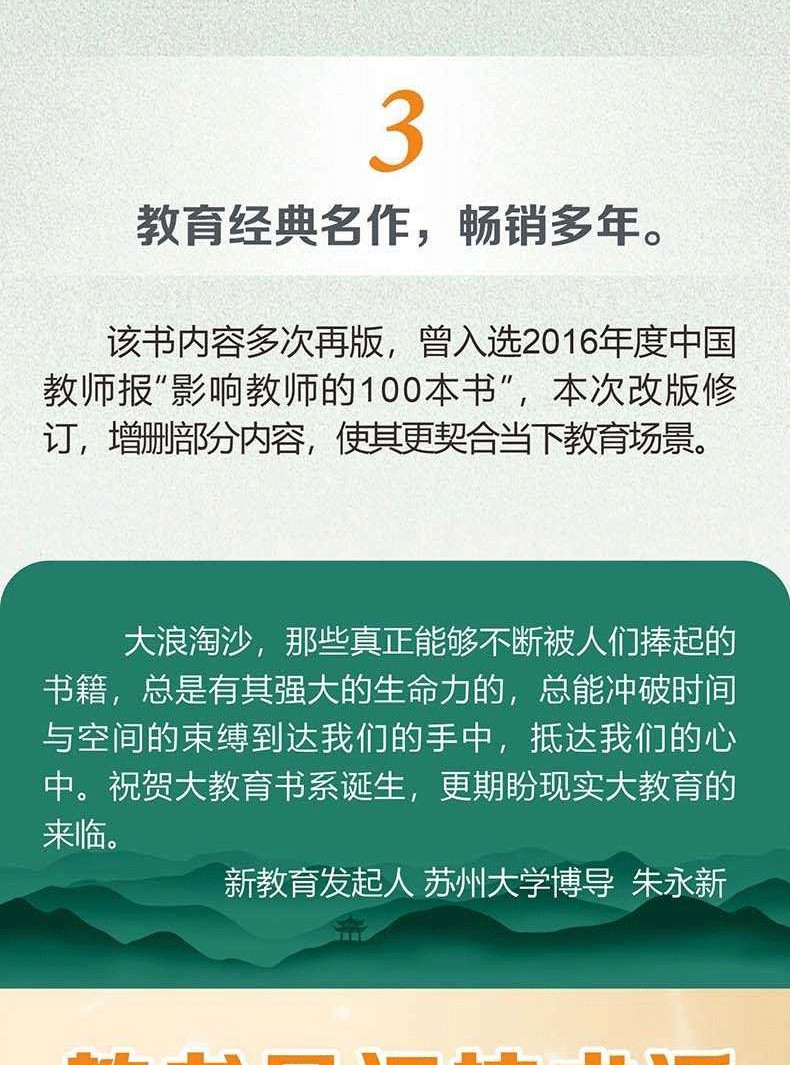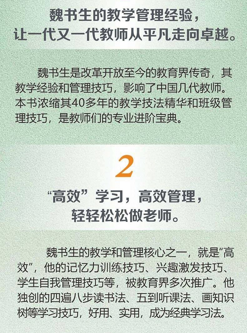本書為著名教育家魏書生40年教壇經驗的心血之作。從教師修行、教學方法、班級管理三方面闡述自己的教學理念,提出教書與育人並重,教師與學生一起成長。同時,作者根據自己多年的教學實踐,提出許多影響深遠的實戰教學技法,也總結出許多廣為流傳的學習方法。班主任工作管理方面,則強調培養學生的自我管理能力,輕輕鬆鬆做班主任。魏書生的教學方法和管理經驗,經過了多年的實踐打磨與不斷完善,許多都成為教育界口耳相傳的經典法則,讓一代又一代教師*凡走向卓越。