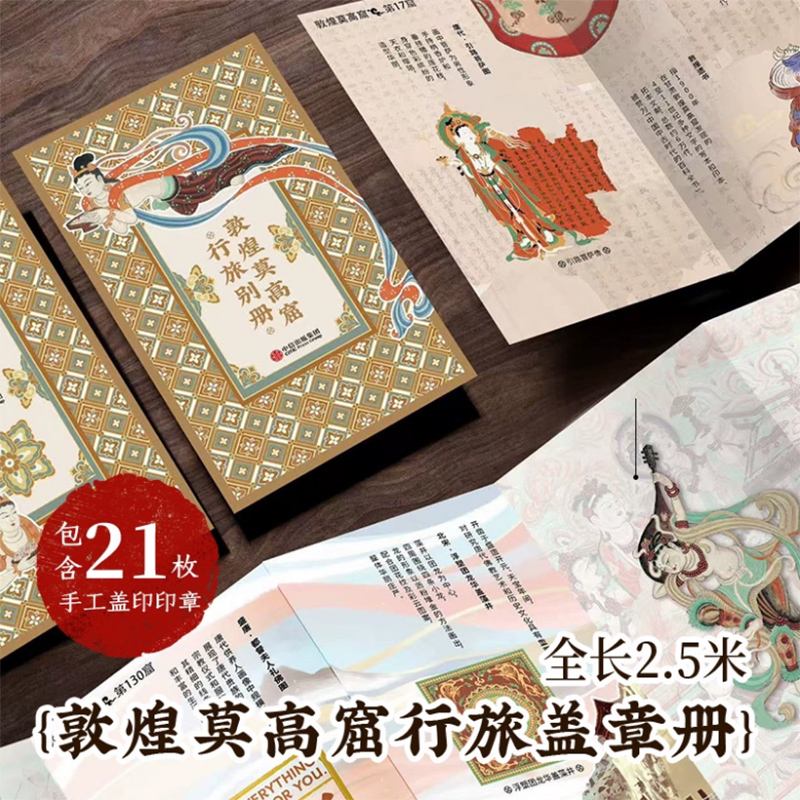 3.把敦煌藝術帶回家,別冊全長2.5米,共包含21枚印章,其中有3枚套色限定章,每一枚均是手工印章,充滿紀念價值、收藏價值