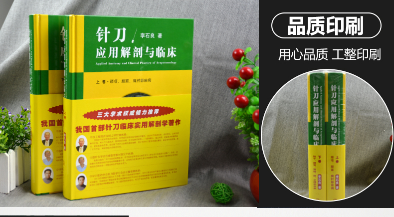 《針刀應用解剖與臨床(上下)》由李石良主編,是針刀療法問世近四十年來第一部針刀應用解剖學著作,作者從針刀臨床實際出發,以常見病種為主線, 既有相應的理論闡述,針對針刀的施術部位進行了詳盡的局部解剖,將針刀入路層次、毗鄰組織結構、針刀松解目標組織等一一客觀展示,使施術者對針下的 解剖結構做到了然在胸部。 一方面有助於提高施術的準確性,避免醫源性傷害的發生;另一方面,也加深了對針刀治病機制的理解,避免對針刀治療進行穿鑿附會、猜測推導,甚至無端聯想 。 同時,對於其他學科了解針刀治療的科學性也大有裨益。