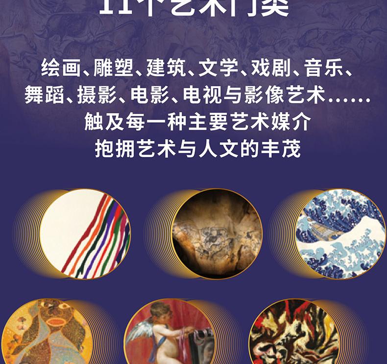 全書涵蓋繪畫、雕塑、建築、文學、戲劇、音樂、舞蹈、攝影、電影、電視與影像藝術共11個藝術門類,讀者有機會了解每一種主要藝術媒介,抱持藝術與人文的豐茂。