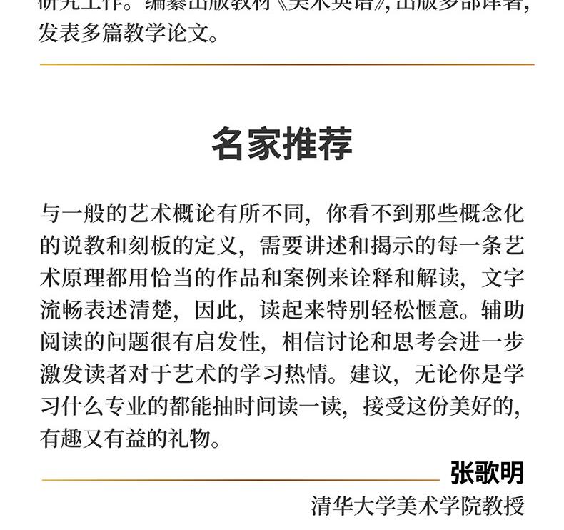 一系列生動而完整的插圖,以及針對關乎我們這個時代的藝術和價值問題的詳細討論與互動,促進讀者對人文知識的領會與掌握。作者對代表性藝術作品觸類旁通的批評與分析,幫助讀者綜合理解藝術的複雜性及其與多元價值的互動。開放式的提問啟發讀者進行多層次、多角度的思考,不斷向藝術的本質靠近,從而提升自身的藝術品位,獲得心靈的自由。
