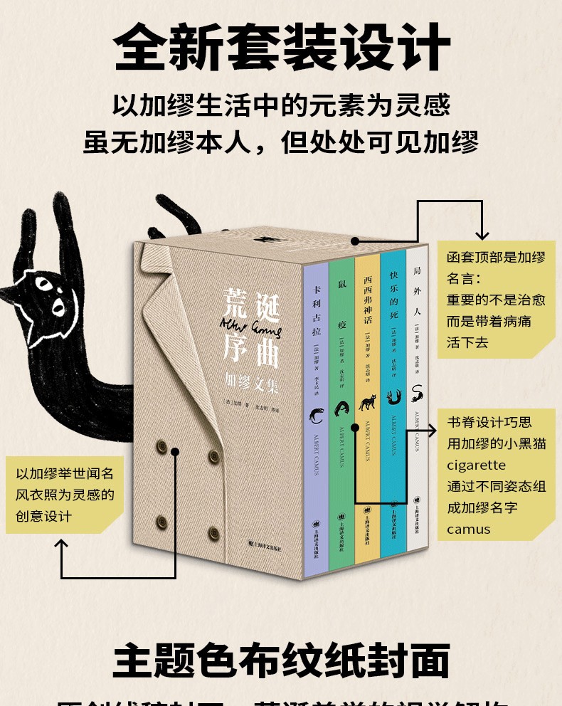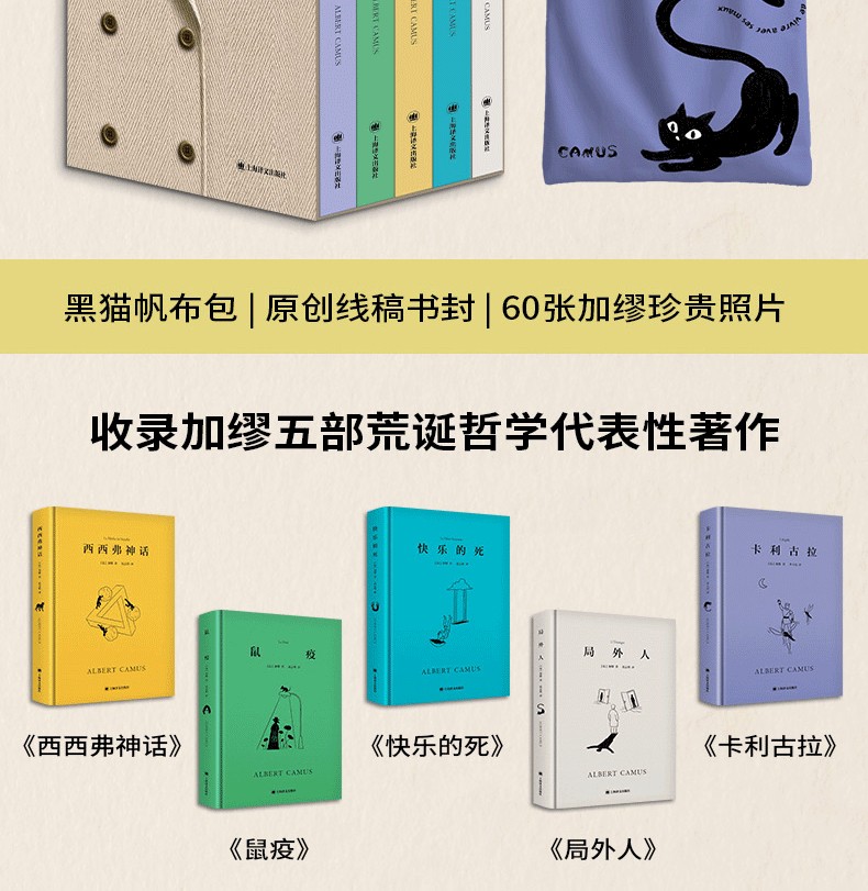 【盒函精裝典藏版】荒誕序曲:加繆文集(全5冊) 局外人+鼠疫+西西弗神話+快樂的死+卡拉古拉 收錄60張加繆珍貴照片