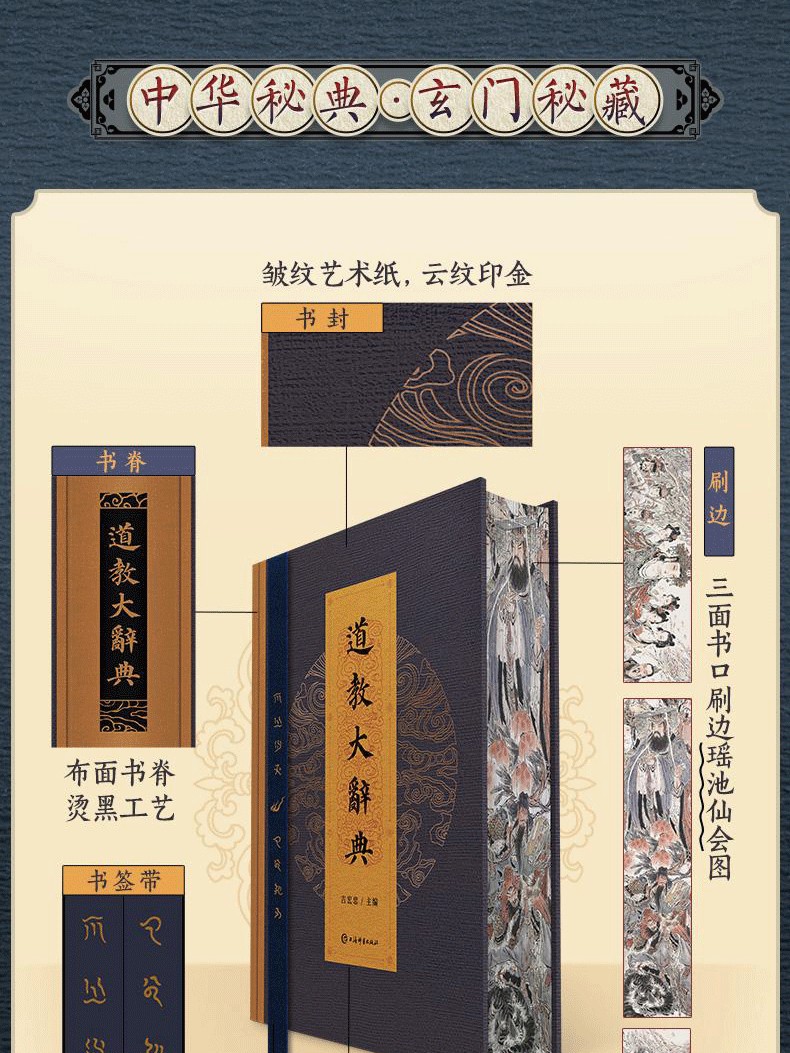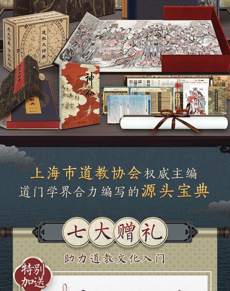 【刷邊盒函版】道教大辭典 道教歷史文化現狀大型專科辭典 (附贈 神仙圖冊+知識圖譜+綾布捲軸畫+藏書票)