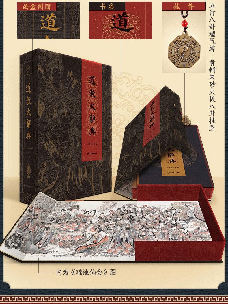 【特裝刷邊盒函版】道教大辭典 吉宏忠道教百科全書 吸收百年道教研究成果 二十年匠心打造的道教文化結晶 道教歷史文化現狀大型專科辭典 (附贈 神仙圖冊+知識圖譜+綾布捲軸畫+藏書票)