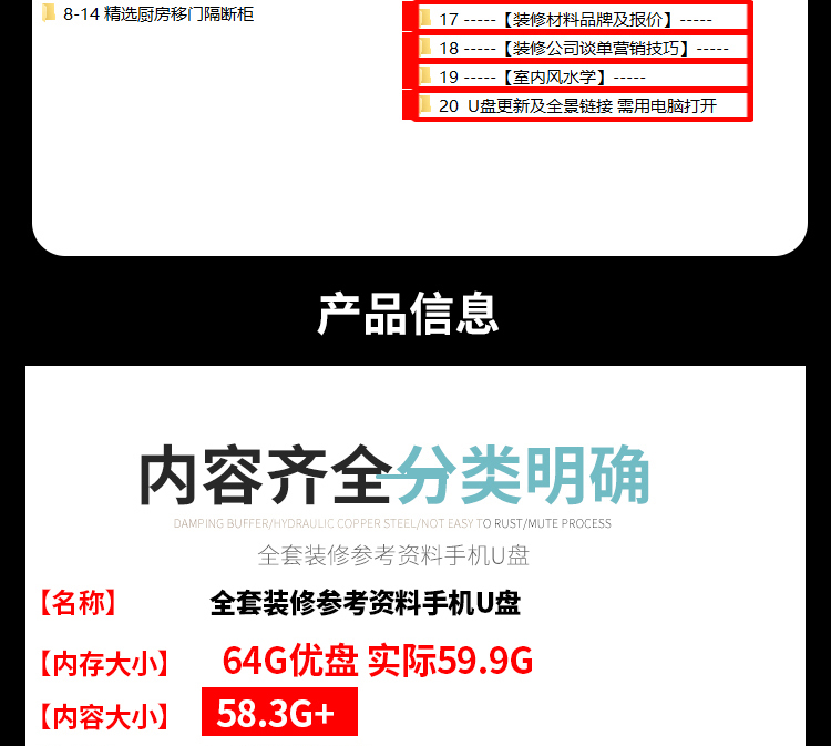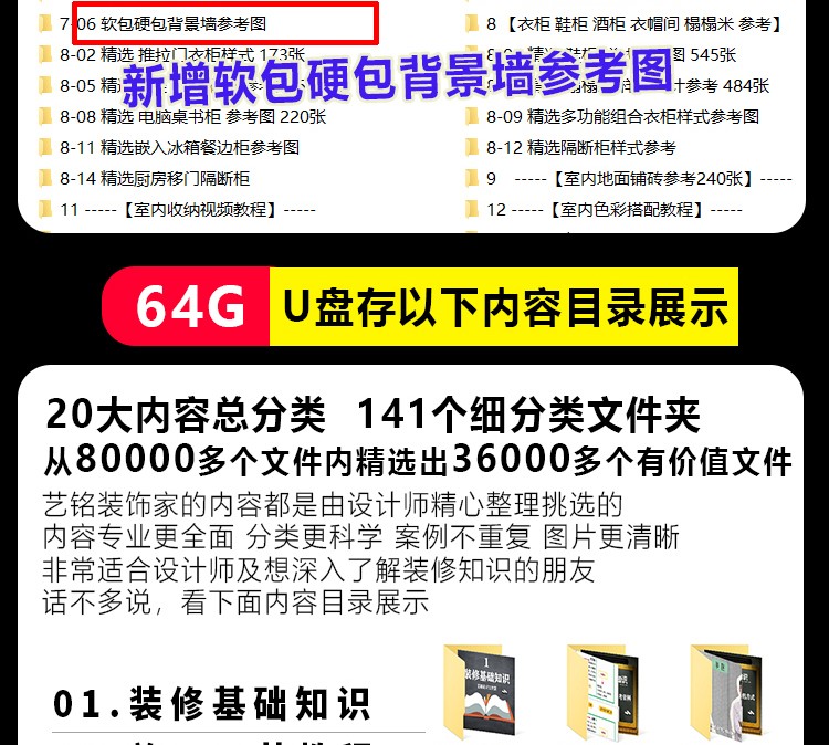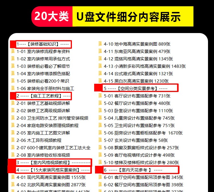 室內裝修全套裝潢效果圖100G U盤教學 木工高清各風格實景案例(128G U盤發貨,無需下載 即插即看,手機電腦都能觀看)