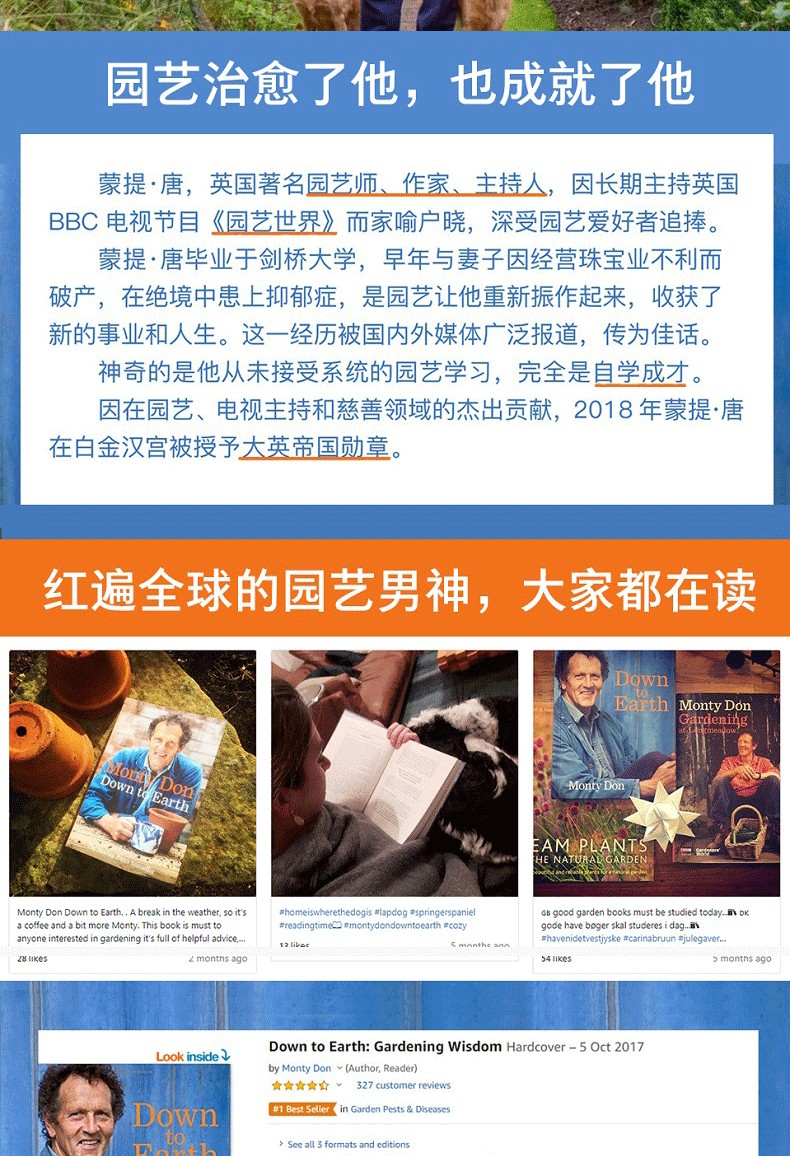 蒙提 唐畢業於劍橋大學,早年與妻子因經營珠寶業不利而破產,在絕境中患上抑鬱症,是園藝讓他重新振作起來,收穫了新的事業和人生。神奇的是,他從未接受過系統的園藝學習,完全是自學成才。而他是一位有機園藝實踐者,從2008年到2017年擔任英國土壤協會主席。