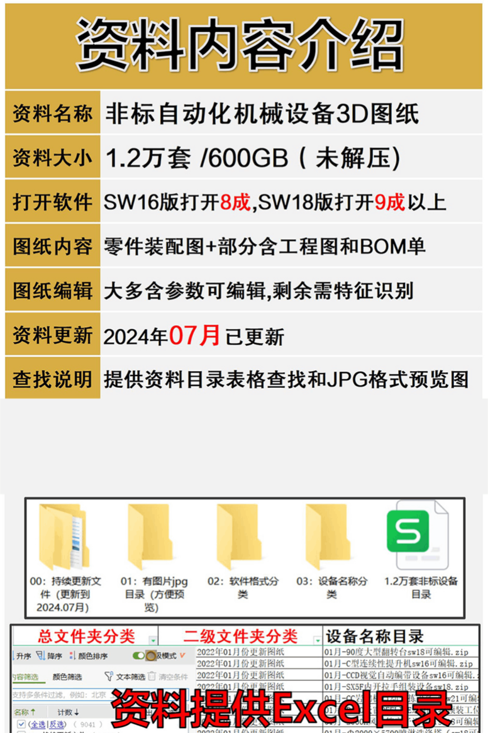 1.1萬套Solidworks非標自動化設備3D圖紙 機械設計SW建模 三維模型 (638G U盤出貨 無需下載 即插即看)