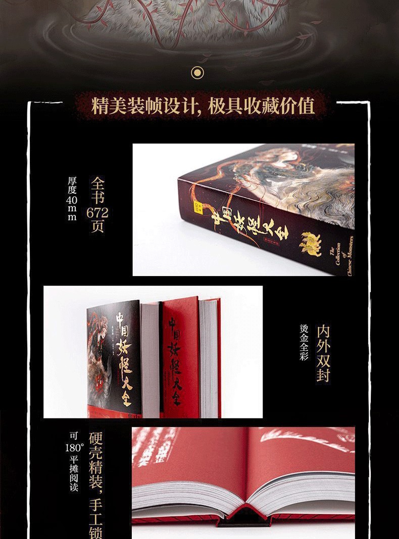 《中國妖怪大全》是中國妖怪文化的集大成之作,全書收錄了305個妖怪(含136個妖魔鬼怪,125種奇禽異獸,27位神仙異人,17種仙草奇蟲),217個神話故事,417幅經典畫作。從神仙異人到奇禽異獸,再到妖魔怪,匯集國各地傳說、民俗和神話,配以奇幻又富有創意的插畫,為讀者呈現了一個光怪陸離、神秘莫測的妖怪世界。