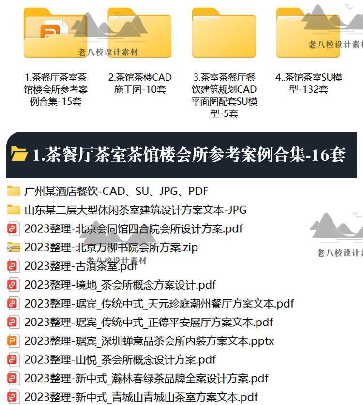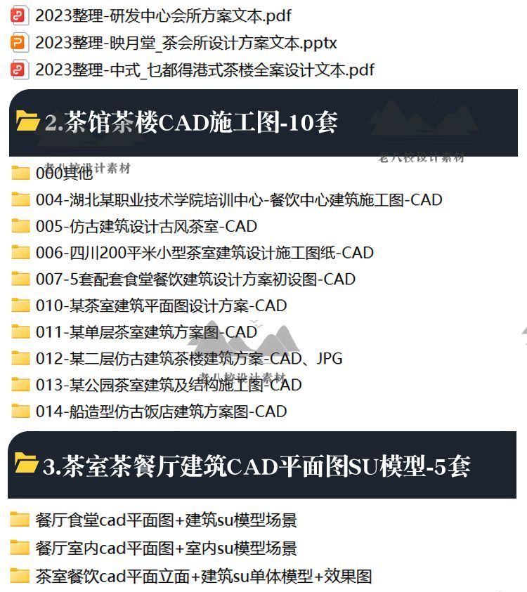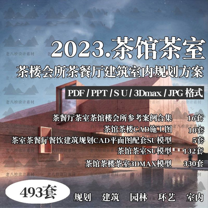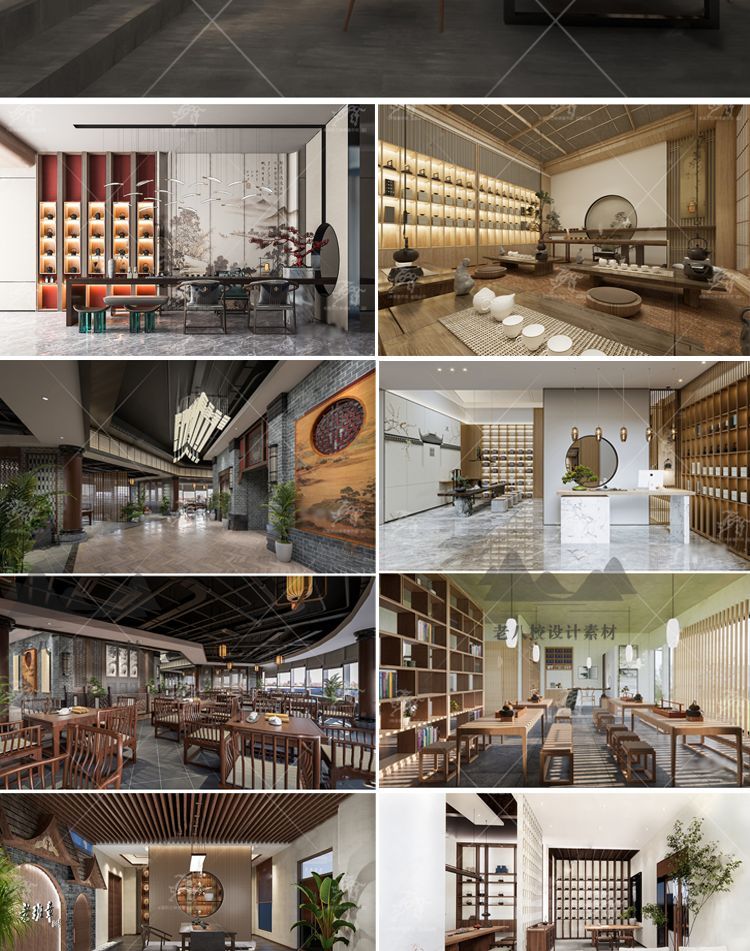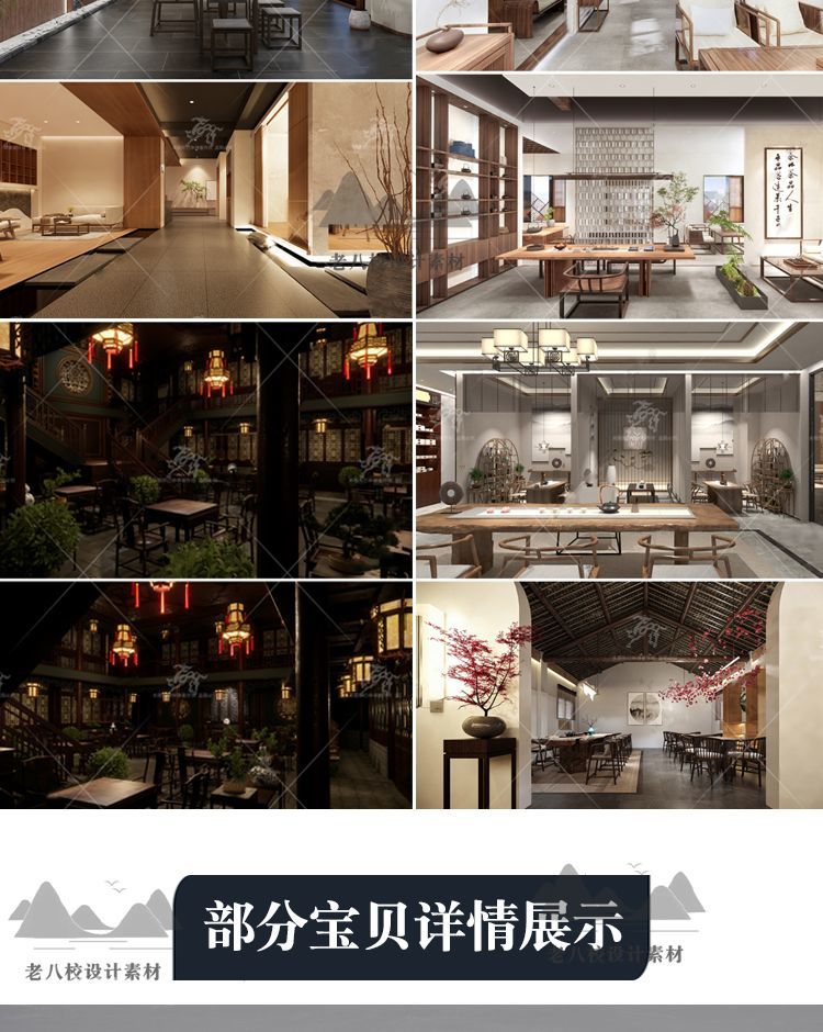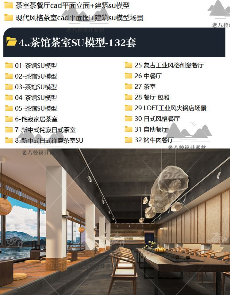 493套新中式 日式茶樓茶館茶餐廳會所SU模型 CAD施工圖規劃設計方案資料(128G U盤出貨 無需下載 即插即看)