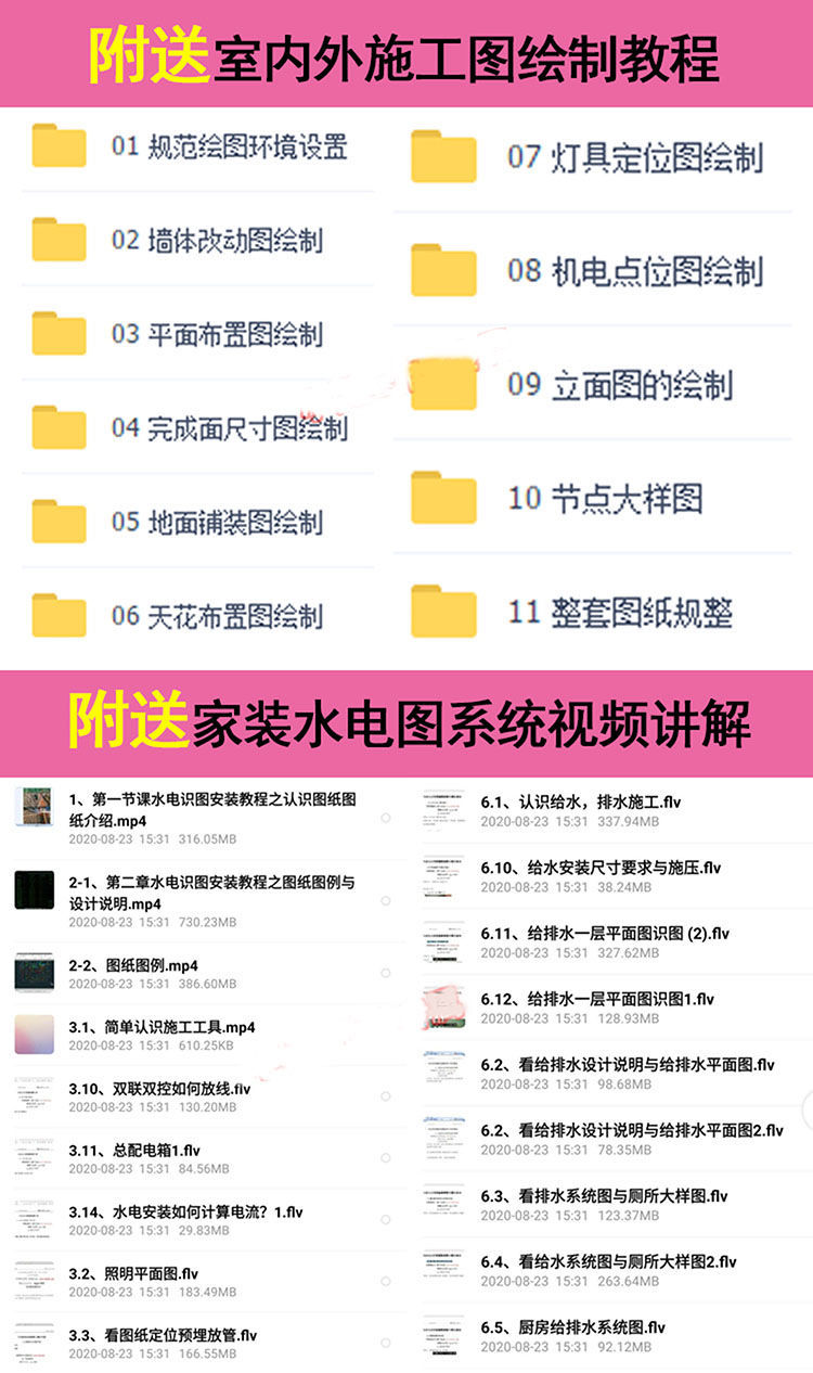 室內裝修水電設計 施工安裝改造工藝圖紙繪製講解實戰視頻教程64G