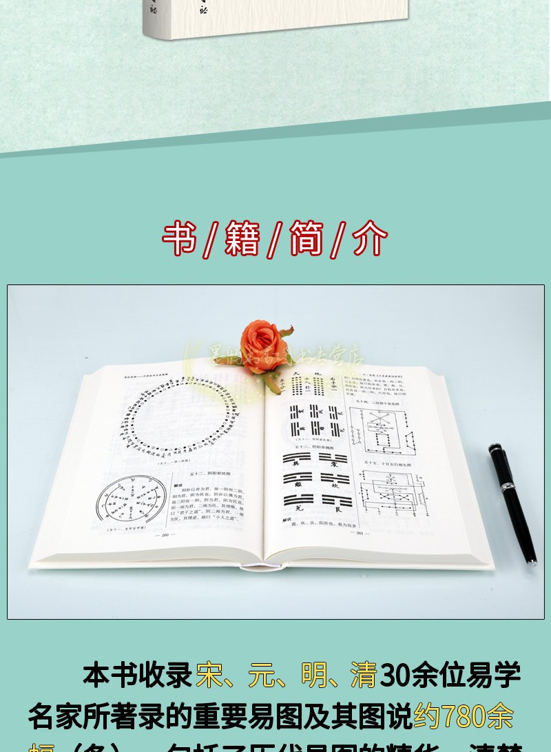 本書收錄的易圖共1,240餘幅,分別載於宋、元、明、清四代43位易學家的五十種易著當中,基本包括了歷代易圖的精華。以單種易著為單位收編整理易圖,圖下附作者對易圖的闡釋,各書的排列依時代先後為序,使讀者在領略易圖發生髮展的全貌後,能逐步認識到它的價值和真諦。