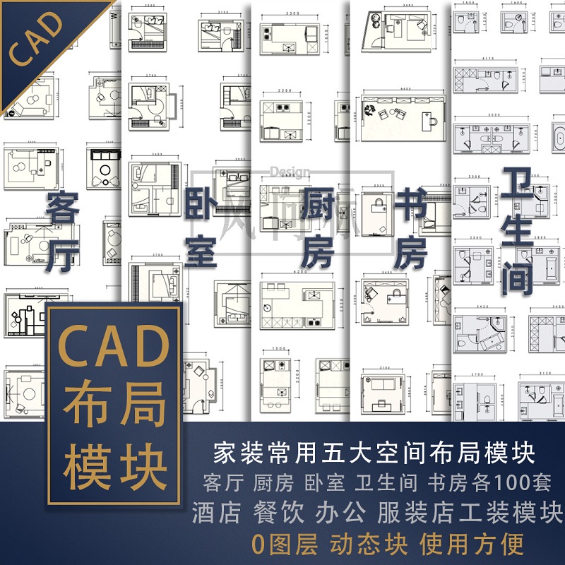 CAD平面佈局模組合集500套 客廳 臥室 廚房 衛生間 cad圖庫+2024室內CAD施工圖模板 +彩色施工圖製圖模板(64G U盤發貨,無需下載,即插即用)
