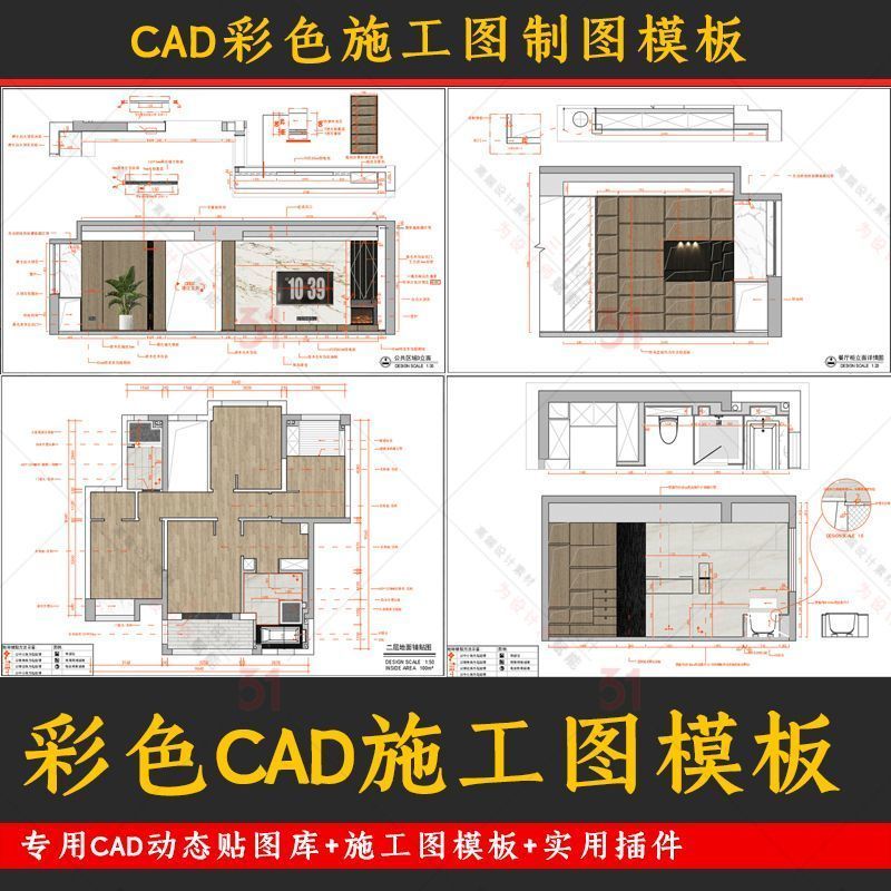 室內設計高級感施工圖繪圖模板(U盤64G)無需下載 即插即看 模型空間規範+佈局空間規範+列印樣式+PSD來源檔案+切換佈局窗口