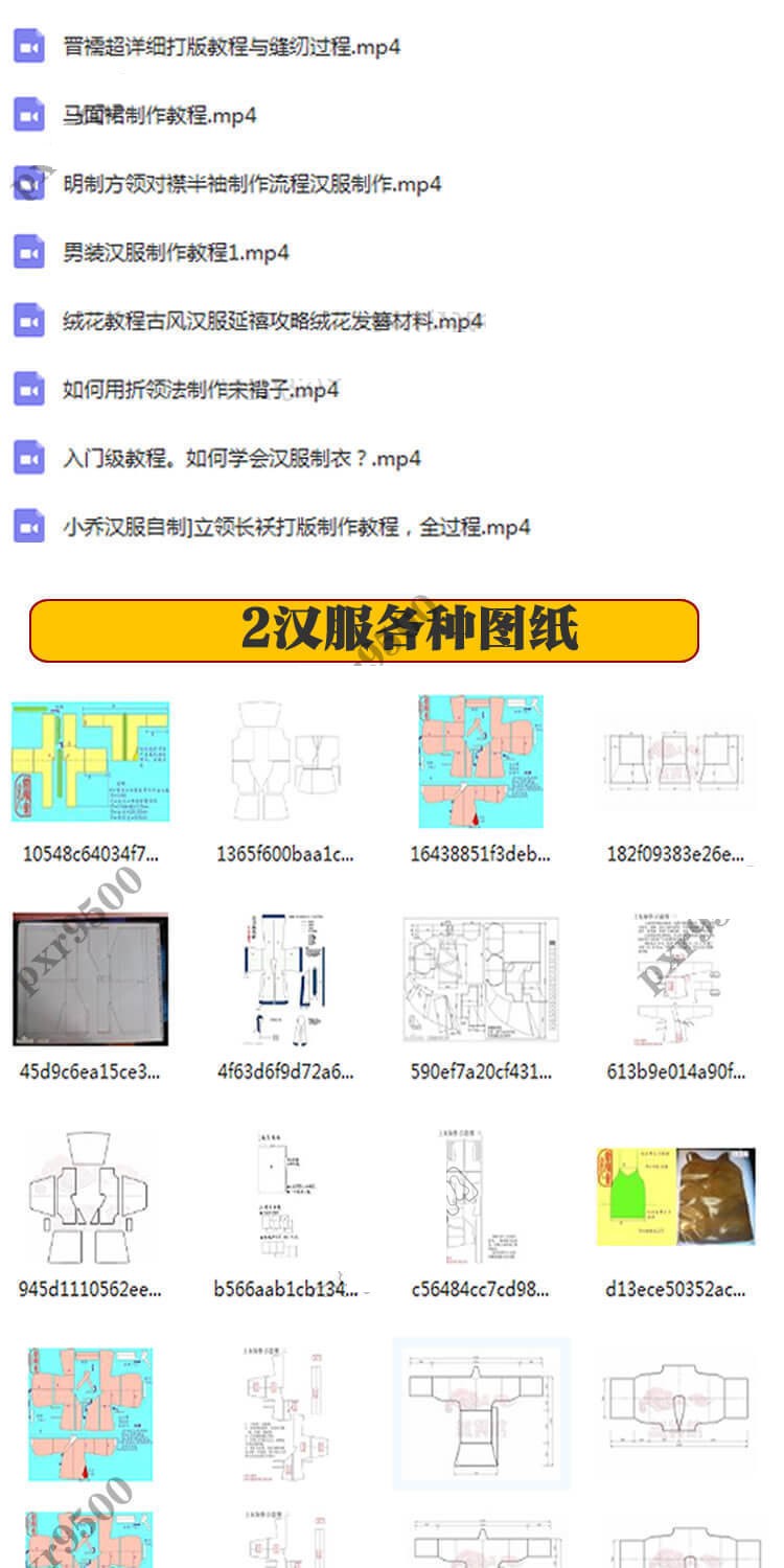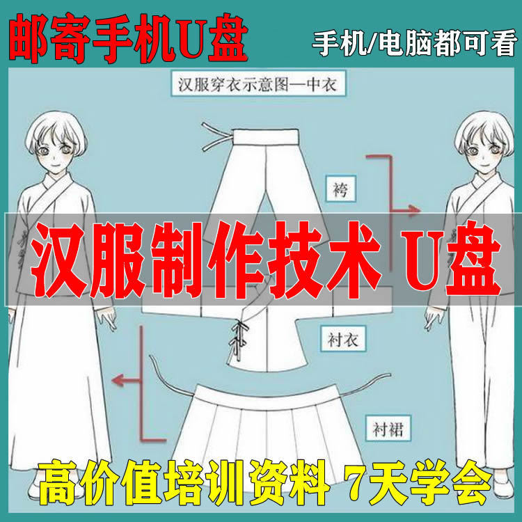 漢服設計裁剪 刺繡圖案古風裝素材 視頻教程自學習U盤32G