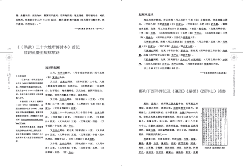 本書對於中國古代東海、南海的史料尤其重視,迄今所知*早記載*的《(洪武)三十六姓所傳針本》和諸多「使琉球錄」所記的釣魚列島、舟子往來南海諸島的史料,無不詳列其中,並在「引書舉要」中恰當勾勒,可見中國先民對這些領海島嶼的發現、開發與經營。資料翔實不誇張,可作為中國海疆合乎歷史真相的較佳佐證,去除不利外交往來的不實闡述。