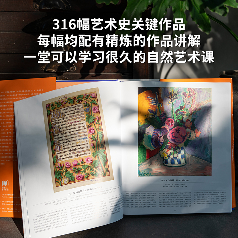 本畫冊收錄316幅花卉主題藝術作品,15萬字詳述。作品涵蓋繪畫、素描、寫生、植物插畫、攝影照片、濕壁畫、古代文物、插花作品、現代裝置、商標設計、影視劇照等多種類型,藝術家包括達文西、大衛·霍克尼、草間彌生、亨利·馬蒂斯、亞歷山大·麥昆、克勞德·莫奈、威廉·莫里斯、喬治亞·歐姬芙、皮埃爾- 約瑟夫·雷杜德等等。