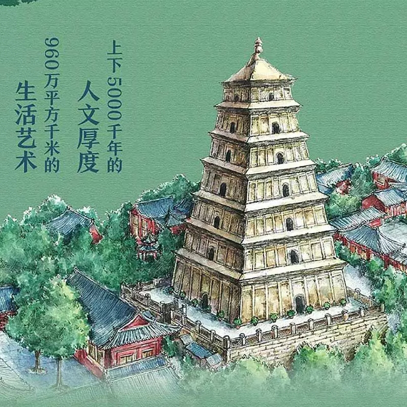 特色1:100幅手繪水彩插畫,以繪畫量測中國。