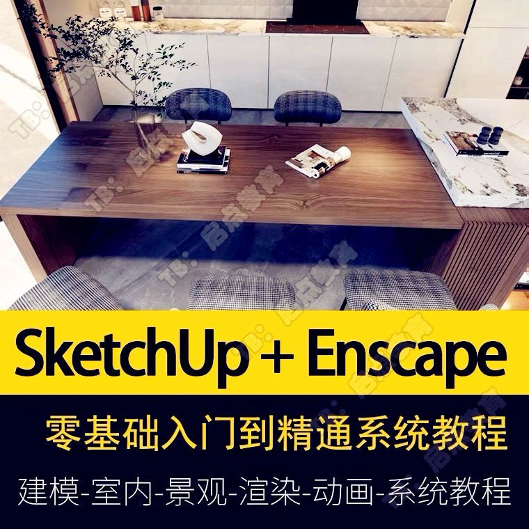 草圖大師Sketchup全套視頻教程(移動硬碟160G)景觀室內建築設計 Enscape建模渲染教程 (移動硬碟發貨 無需下載 即插即看)