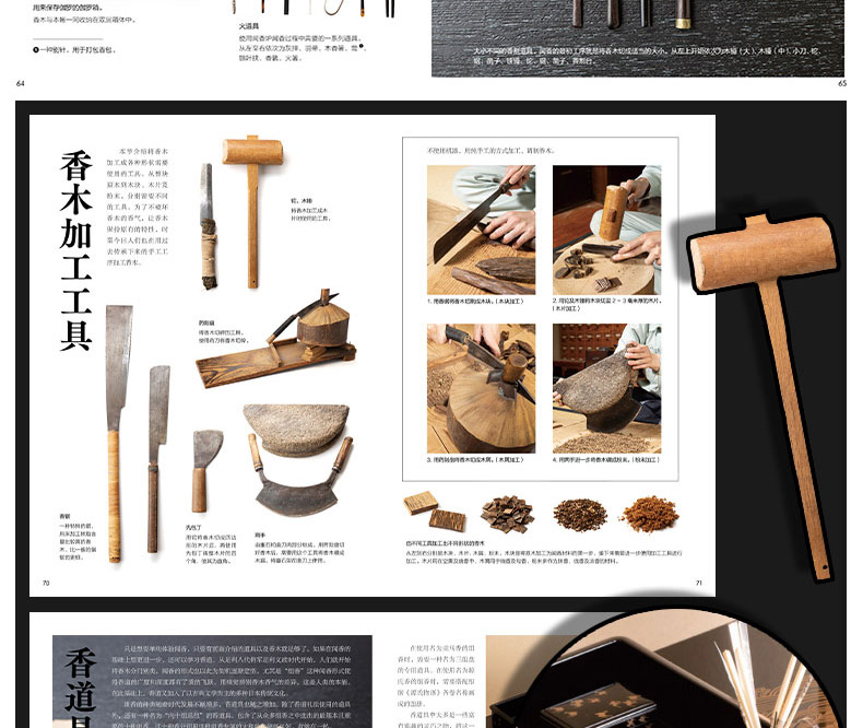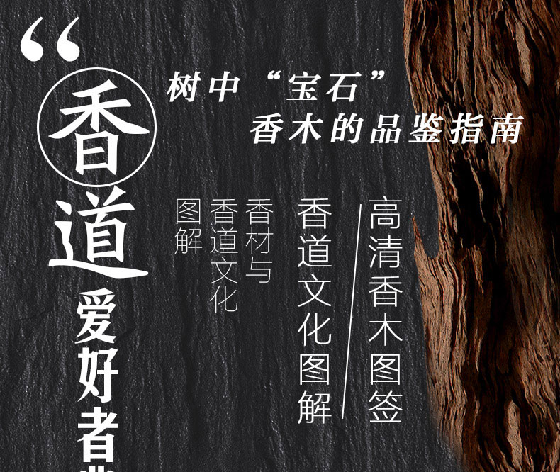 《大美中國茶:圖說香道文化》闡釋香道是一種關於“香的藝術與規律”,使讀者通過閱讀,體會到感官器官經過感性認識和理性認識,繞不同香氣對人的作用及個人的需求,了解現代廣義的香,是指香氣、芳香的氣味。 《詞源》釋詞:凡草木有芳香者皆曰香,如沉香、檀香等。狹義的香,指以天然芳香類香藥及植物黏合劑為原料,依功效的需求,依制定配方,並對香藥進行砲製及配伍,依工藝要求製成的各種香品。其中傳統香須經窖藏方可成真正意義上的香品。以及掌握由此產生的各種香品的製作、砲製、配伍與使用,而逐步形成的能夠體現出中華民族的精神氣質、民族傳統、美學觀念、價值觀念。