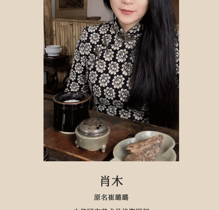肖木,原名崔璐璐,中信國安藝術品投資顧問。 2019年7月受邀擔任鳳凰城博物院聯合舉辦的《清明上河圖3.0》數位藝術香港展宋代香文化顧問。著有《心香一瓣》等書。