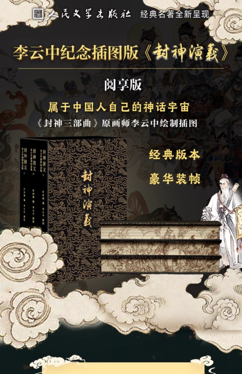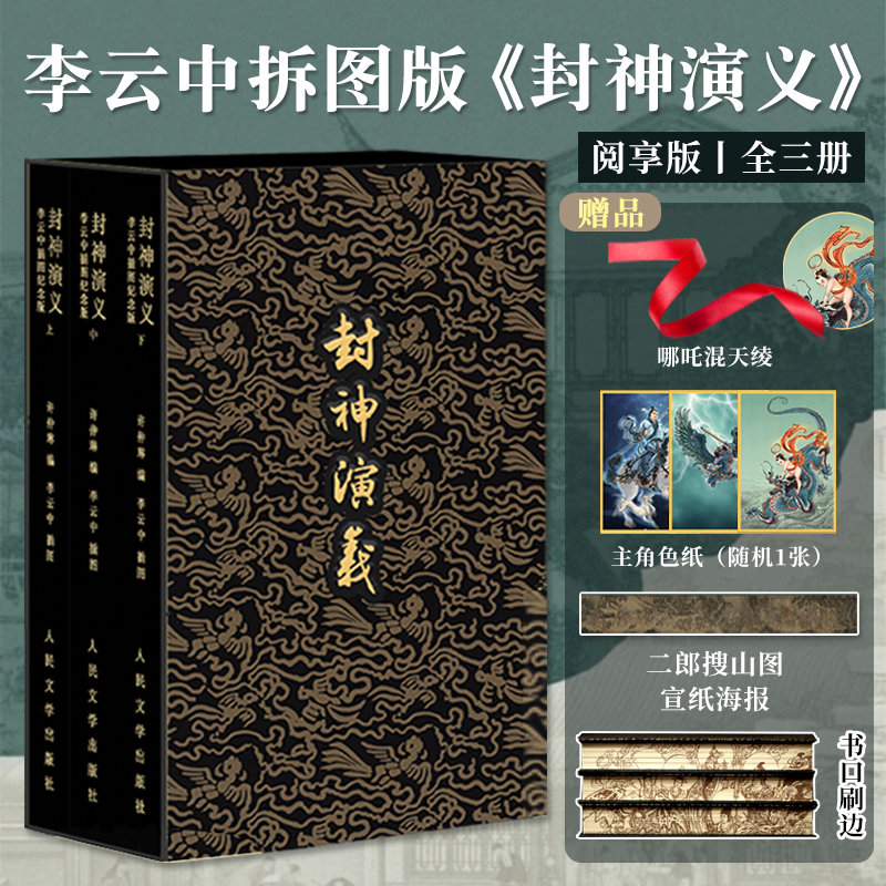 李雲中紀念版《封神演義》全三冊 刷邊特裝版 附贈 混天綾 +主角色紙+二郎搜山圖宣紙海報