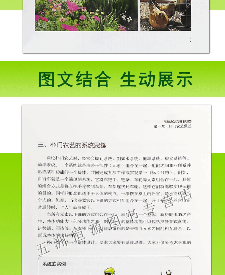 本書講到了耕作的各個方面,不但講到作者如何在農場上創造一個完整的系統,還講到了作者如何從中謀生,樸門農藝的一個重要部分就是逐漸了解自己的個人地位,進而了解到每一塊地都有它獨特的個性和特點,根據這些特點去使用土地,不用化肥,不用各種化學物品,通過土地上的各種生物的相互制約和相互聯繫營造一個和諧的生態環境。