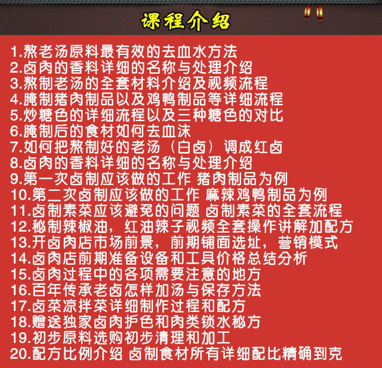 雜拌涼菜小吃技術+秘製滷肉配方高清視頻教學U盤