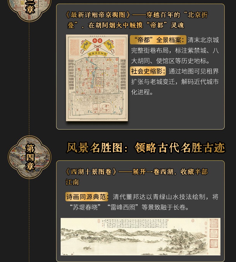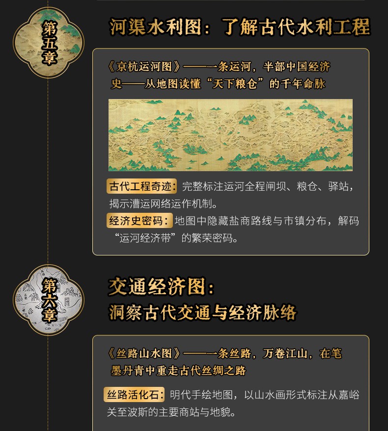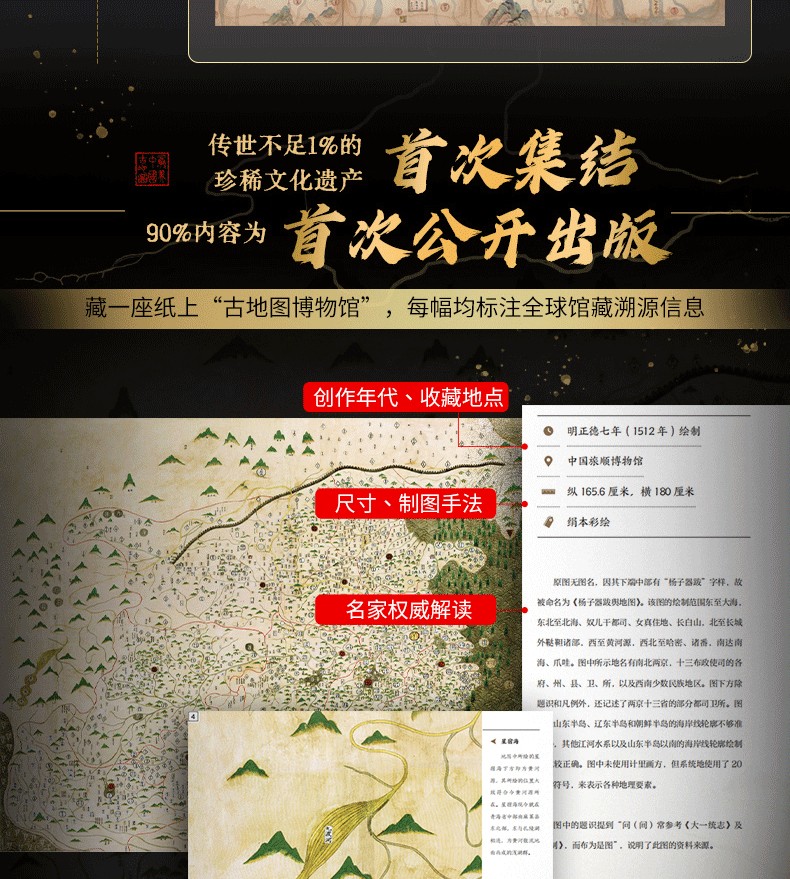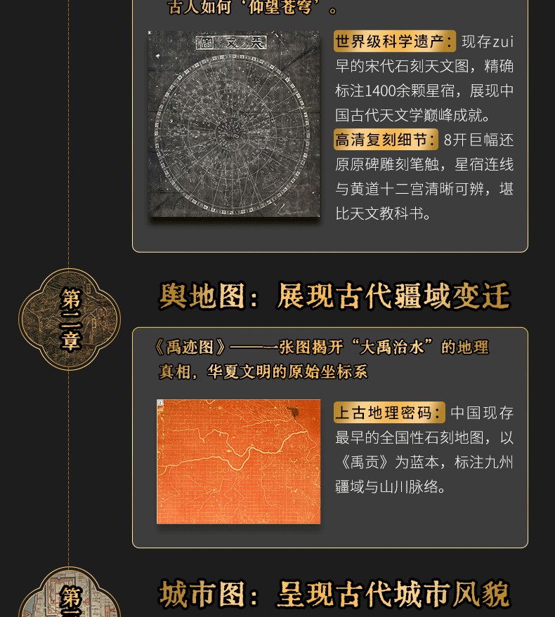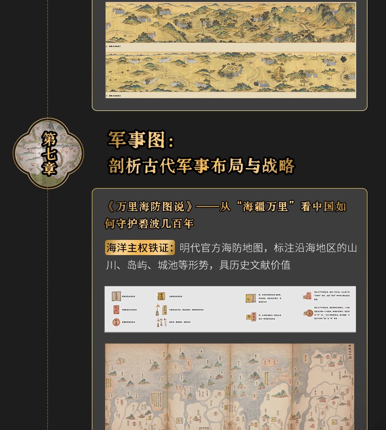 《最美中國古地圖》精選中國歷代的古地圖,展現中國古地圖的大致發現脈絡,再現中國古地圖之美。書中也會向讀者講述中國地圖的發展史、繪製流程、技術發展等地圖背後的故事。書中所有內容均由古地圖專家撰寫把關,具有豐富的知識性和趣味性,能夠為讀者再現中國古地圖的輝煌發展史。書中的地圖主要有以下幾類:天文圖、輿地圖、城市圖、風景名勝圖、河渠水利圖、交通經濟圖和軍事圖。