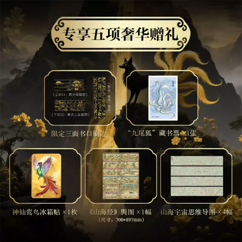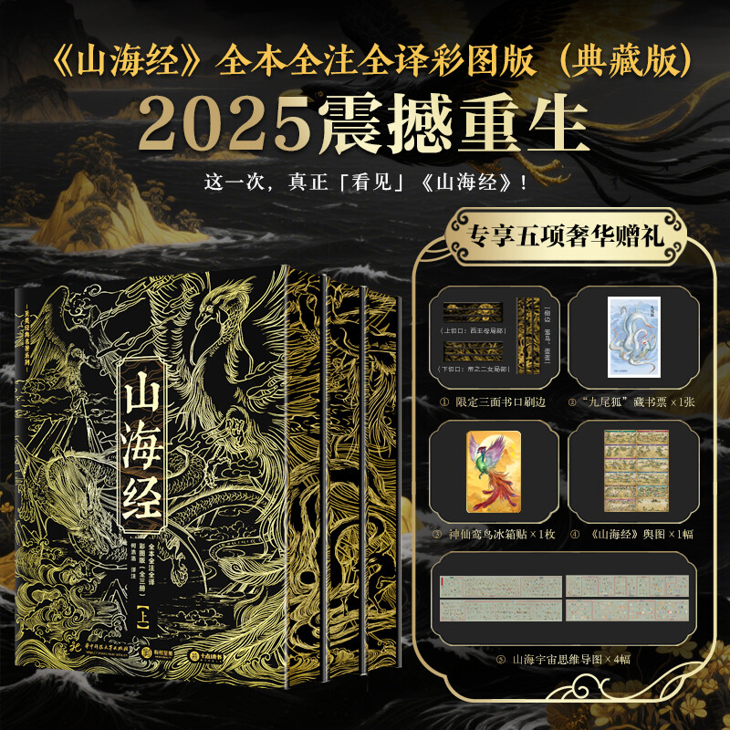 5.一套值得珍藏一輩子的《山海經》,不只書更是藝術品:滿版燙金封面設計,以高端藝術畫冊的標準打造顛覆傳統的《山海經》,一套三冊全部硬殼精裝,收藏有格調,禮贈顯品位!內頁使用仿古藝術紙,模擬古籍手感,閱讀儀式感max!隨書附贈11張《山系復原輿圖》+《華夏世系表》+32頁《神話思維導圖》,既是知識寶藏,也是藝術品級藏書!