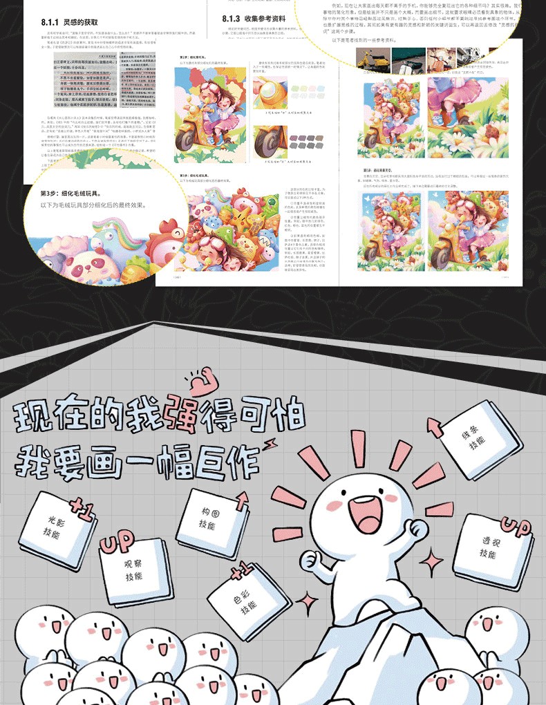 本書共8章。第1章講解練習線條的實用技巧和提升線稿表現力的方法;第2章講解觀察技巧和提升造型表現力的方法;第3章講解影響光影的基本因素和投影的透視原理,以及光影的表現方法;第4章講解色彩的基本原理、色彩搭配的技巧和提升色感的方法;第5章講解不同材質的表現和繪製方法,包含大量的材質繪畫步驟演示;第6章講解線性透視的基本原理、透視的技巧和練習方法;第7章講解常見的構圖類型和常用的構圖技巧;第8章綜合前面所講知識,用一個案例展示完整的創作過程,以便讀者理解並掌握原創表達的方法。