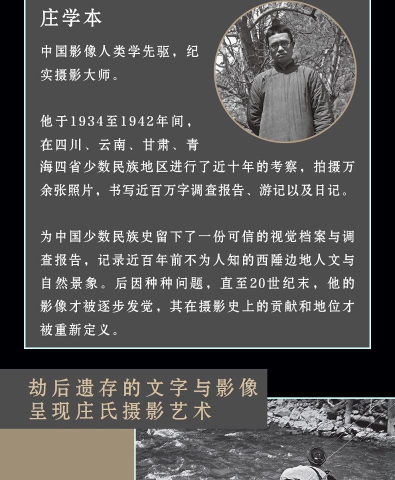 1934年至1941年,莊學本遠離家鄉上海,在中國西南邊陲如孤蓬一般,圍繞心中的聖地西藏盤旋了近十年之久。禹王誕生的羌地、入秋即雪的阿壩草地、餘震不斷的岷江峽谷、拉卜楞寺的盛大法會……這些都是他出發時夢想不到的景象。漫漫西行,留下了萬余張照片及近百萬字的一手資料。入藏的幻夢雖破滅,但人生的一場悲劇卻成就了其攝影藝術的非凡境界,也在人類學史上添上了濃墨重彩的一筆。