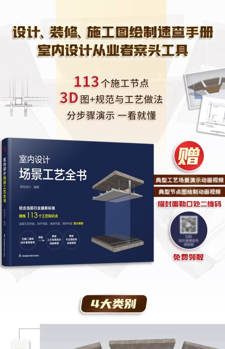 區別於其他節點書,本書融合設計、節點與施工三方面進行解說。從材料的不同設計形式出發,如整面做木飾面,或木飾面與乳膠漆拼接等不同的形式來講解節點做法,能夠讓設計師更好的了解節點的適用位置和適用場景。同時將不同場景下的節點與施工做法進行逐步講解,可以幫助設計師將設計、節點與施工三者融匯貫通,從而更有效率的完成設計工作。