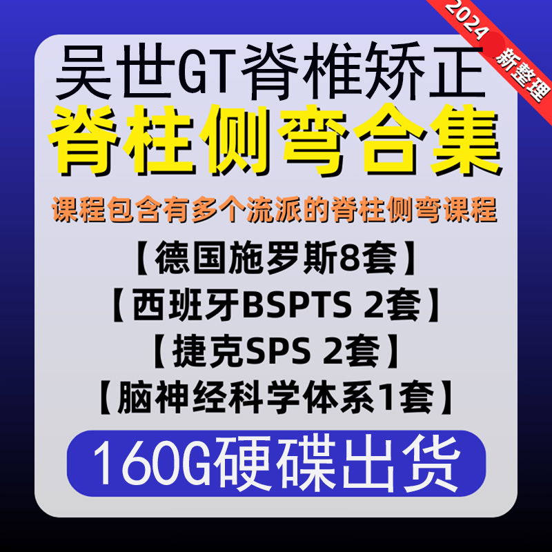 吳世GT脊椎矯正,脊椎側彎 ,矯正全身骨關節技術,全套視頻課程(160G硬盤出貨,無需下載,即插即看)