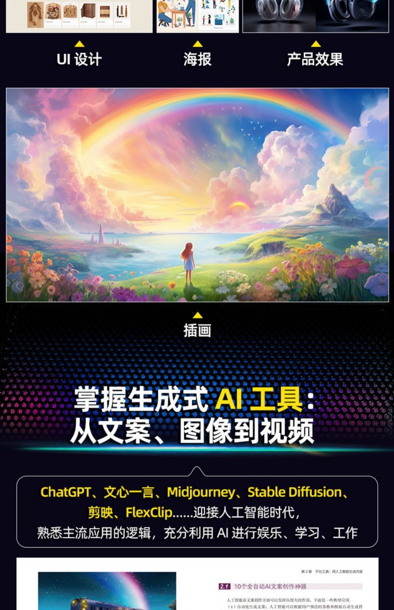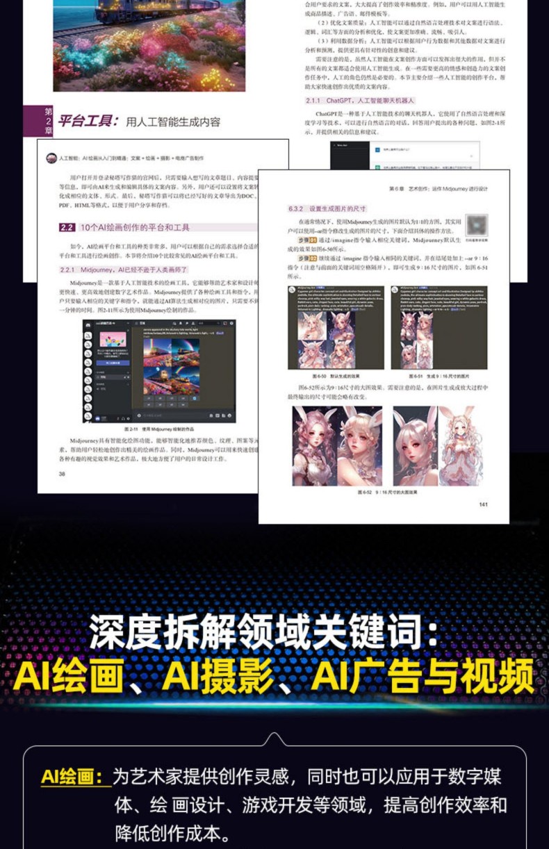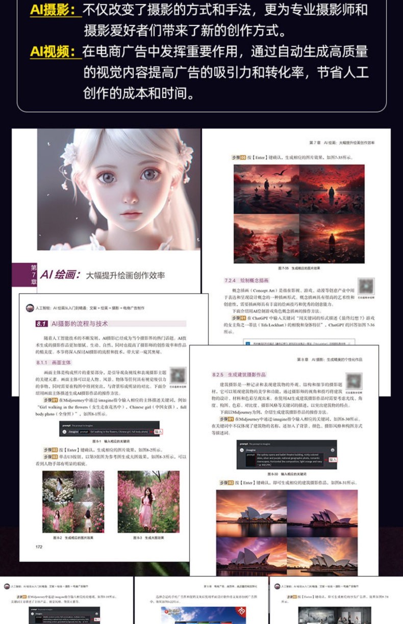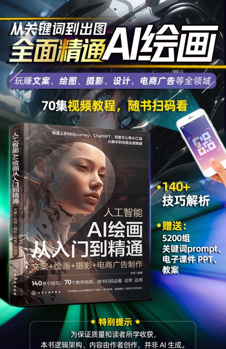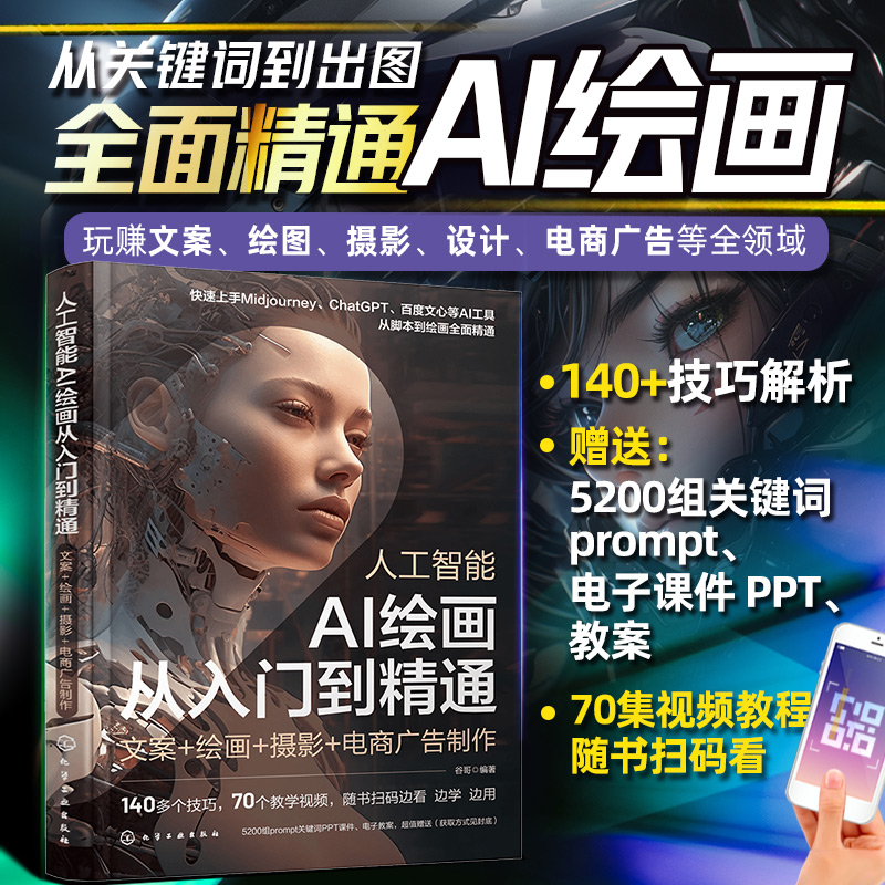 AI視覺設計領域的應用指南:《Midjourney 人工智能AI繪畫教學》將開啟你的視覺設計新旅程,並繪製出無限可能。從基礎娛樂到商業應用,10章內容全面涵蓋Midjourney的功能,幫助您充分釋放創造力,讓您從AI繪畫小白成長為高手!