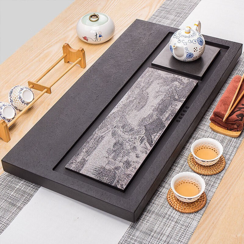 整塊天然烏金石茶盤 商務家用 現代簡約石材茶盤(破損免費補寄)