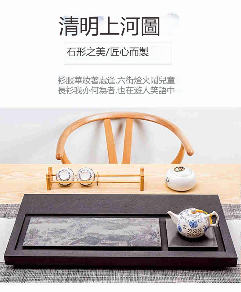 天然整塊烏金石茶盤 國風山水畫 清明上河圖 石茶盤 影雕工藝