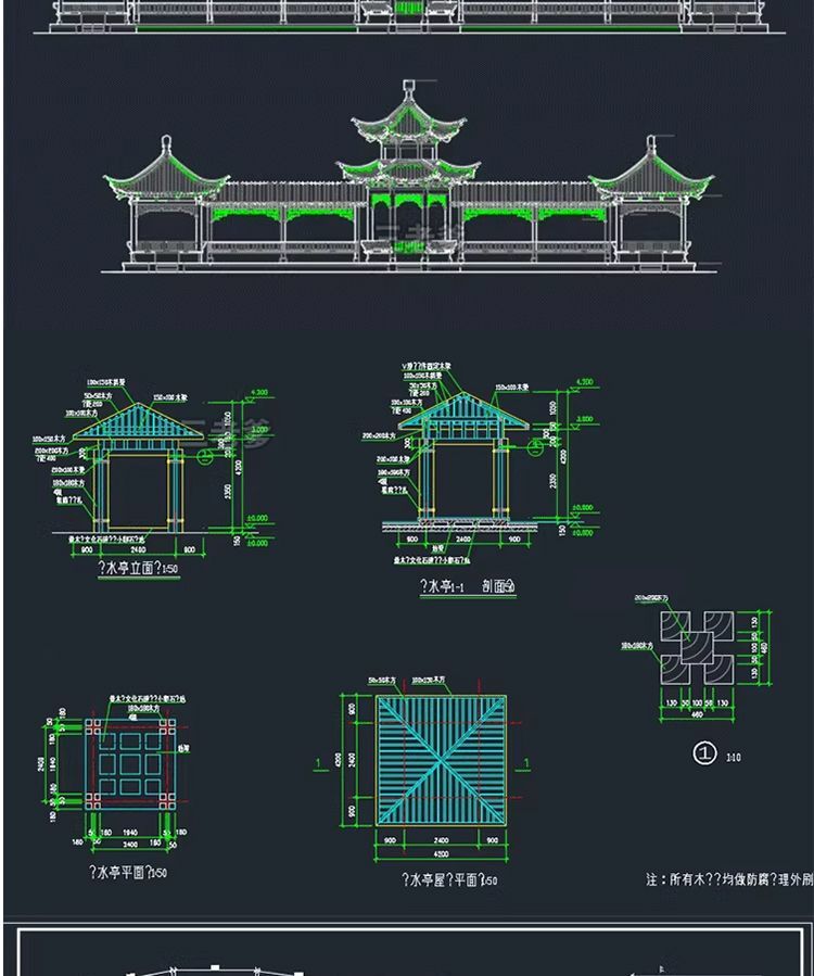 180套中式四合院CAD圖紙 設計施工圖 庭院平面立面剖面圖 U盤64G (U盤發貨 無需下載 即插即看)